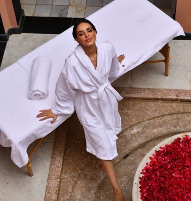A true 5-star wellness program is offered at Mövenpick Hotel Mansour Eddahbi Marrakech, featuring a spa, yoga studio, and fitness room.