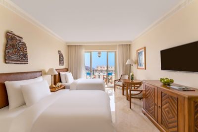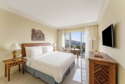 Mövenpick Resort & Residences Aqaba is a stunning five-star retreat in the heart of Aqaba, Jordan, offering breathtaking views of the Red Sea and surrounding mountains. With direct access to its own private beach, this family-friendly resort is just 10 km from King Hussein International Airport and near the archaeological sites of the ancient Islamic city of Ayla.