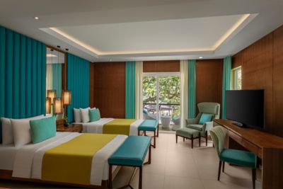 Sol Marina Beach Suites are stylishly decorated, featuring high-speed internet access and individually controlled air-conditioning. These suites come fully equipped with spacious wardrobes, large chest of drawers, 55-inch smart HD TV in the living room and 40-inch TV in the bedrooms, along with vanities that double as workstations.