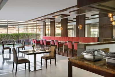 Situated in the atrium lobby of Mövenpick Al Mamzar, Spices is a contemporary all-day dining restaurant that provides exceptional International cuisine. The offerings range from Oriental creations and traditional Middle Eastern cuisine to the world's homemade classics. Whether it is a hearty breakfast, business lunch or intimate dinner, the international buffets and superb à la carte menus are created with an artistic mix of seasonal ingredients and served in a warm and relaxed setting.